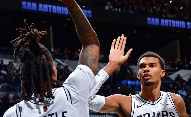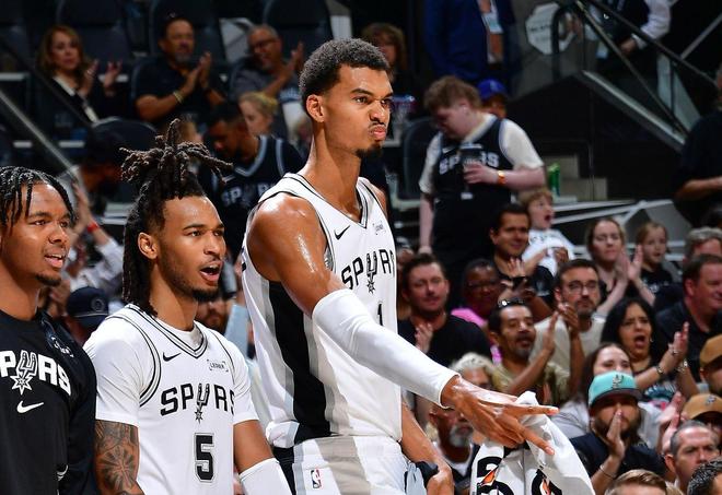 不过,如今最让这对组合兴奋的还是马刺队的强势开局——目前8胜3负,这是自2016-17赛季以来他们的最佳开局,他们看到了重返季后赛的希望。今年二月,文班亚马因右肩深静脉血栓将缺席2024-25赛季剩余比赛的消息传出,他们的未来一度充满迷茫。毕竟静脉血栓有过让球员提前退役的案例。所幸,现在的医疗已经变得更加发达,文班亚马经过数个月的治疗,已经战胜了疾病,并且回到了赛场。这位法国天才球员在九月下旬宣称:“今年夏天没有人像我这样训练过。”
