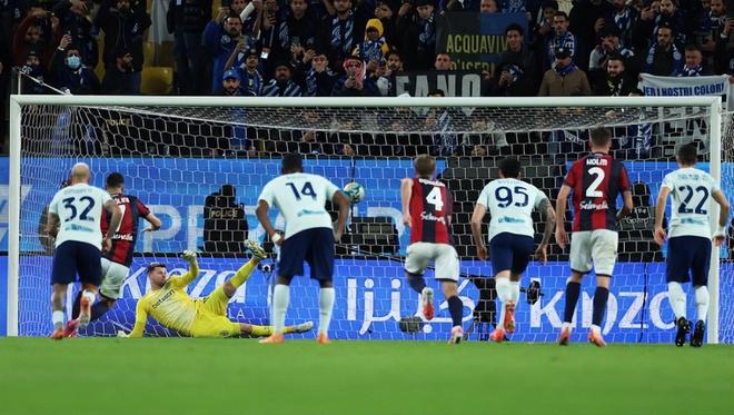 点球大战中,巴斯托尼、巴雷拉和博尼竟连续3轮罚丢了点球,纵使博洛尼亚这边的莫罗与米兰达也射丢了点球,但他们还是凭借着3次主罚命中,总比分4:3战胜国米挺进超级杯决赛;他们决赛对手是淘汰了米兰的那不勒斯。而国米则无缘连续第5个赛季进入意大利超级杯决赛,此前4个赛季国米进入决赛拿到了3冠1亚。