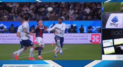 第32分钟,比塞克禁区内手球,博洛尼亚众将集体投诉,裁判回看VAR之后认定点球。第35分钟,奥尔索利尼操刀命中,博洛尼亚扳平比分,1-1!
